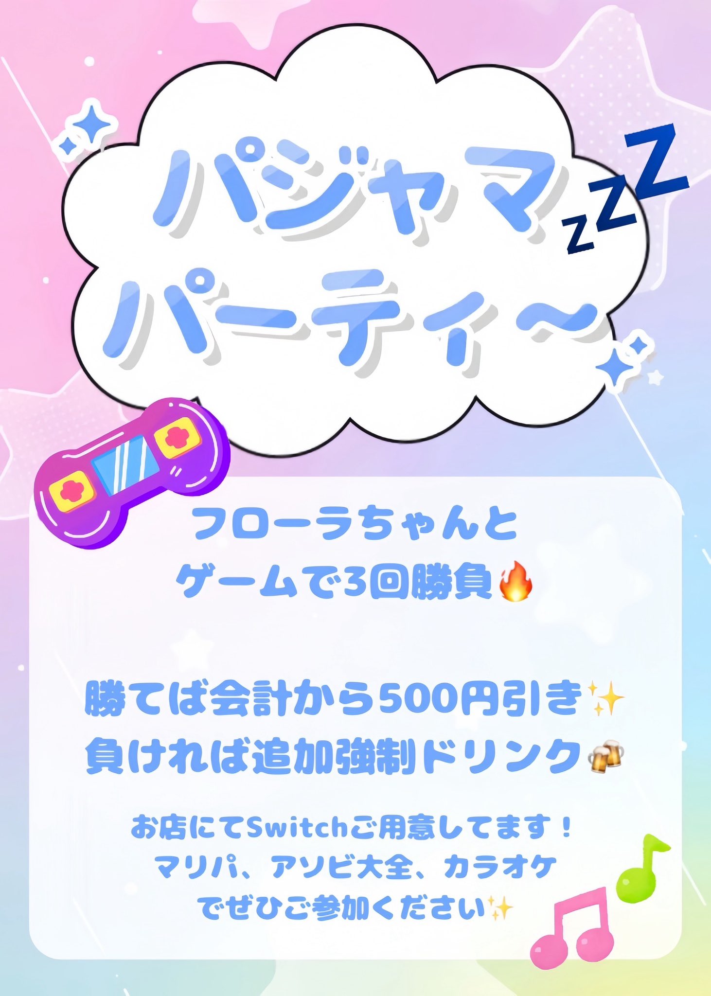 1/23(金) 〜 1/31(土) パジャマパーティ開催 🌙 2026 1/22 🌙 パジャマパーティ開催 🌙 1/23(金) 〜 1/31(土) 23日・24日はキャストがパジャマ姿でお出迎え ―― さらに… キャストとゲーム勝負 ―― いつもと違うふららぼ、ぜひ遊びにきてください✨ #ふららぼ #コンカフェ #上野コンカフェ#湯島コンカフェ #御徒町 お知らせ イベント