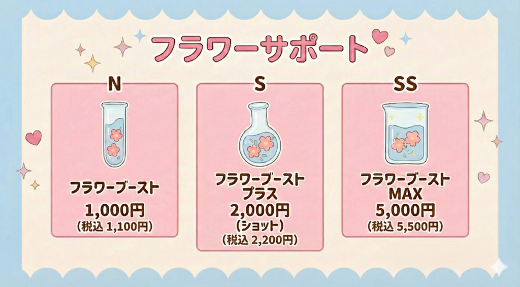 • SS フラワーブースト MAX: 5,000円(税込 5,500円)