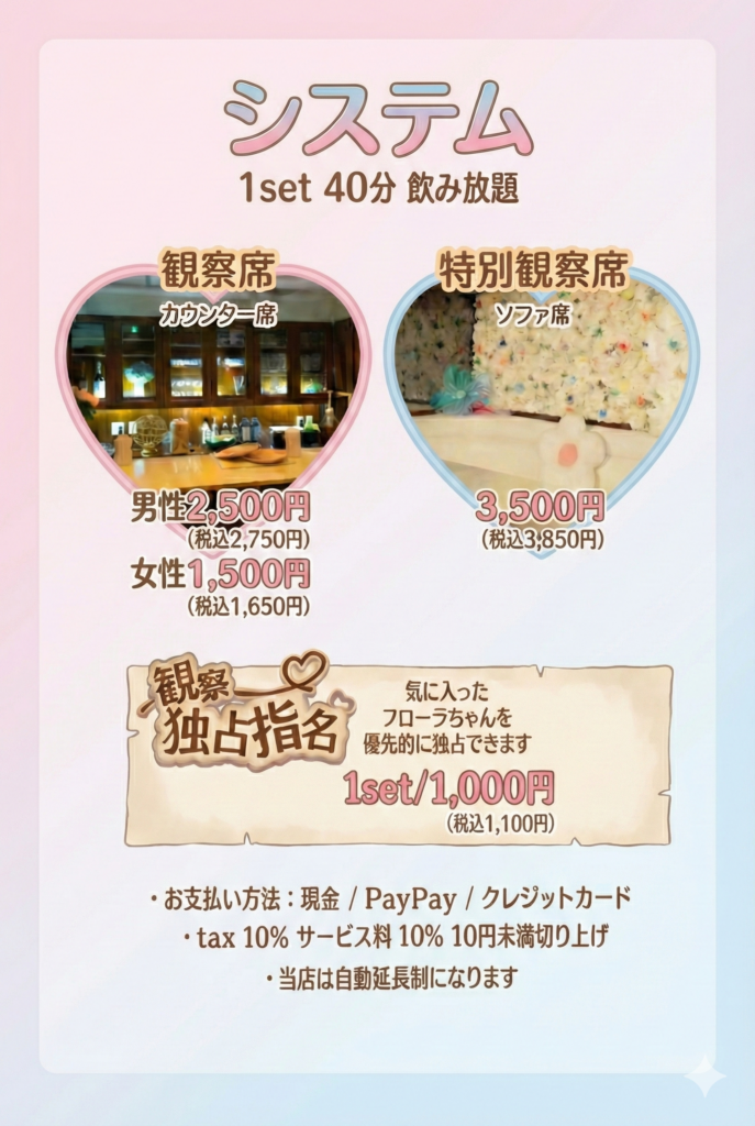 推しのフローラちゃん(キャスト)を優先的に指名できます。